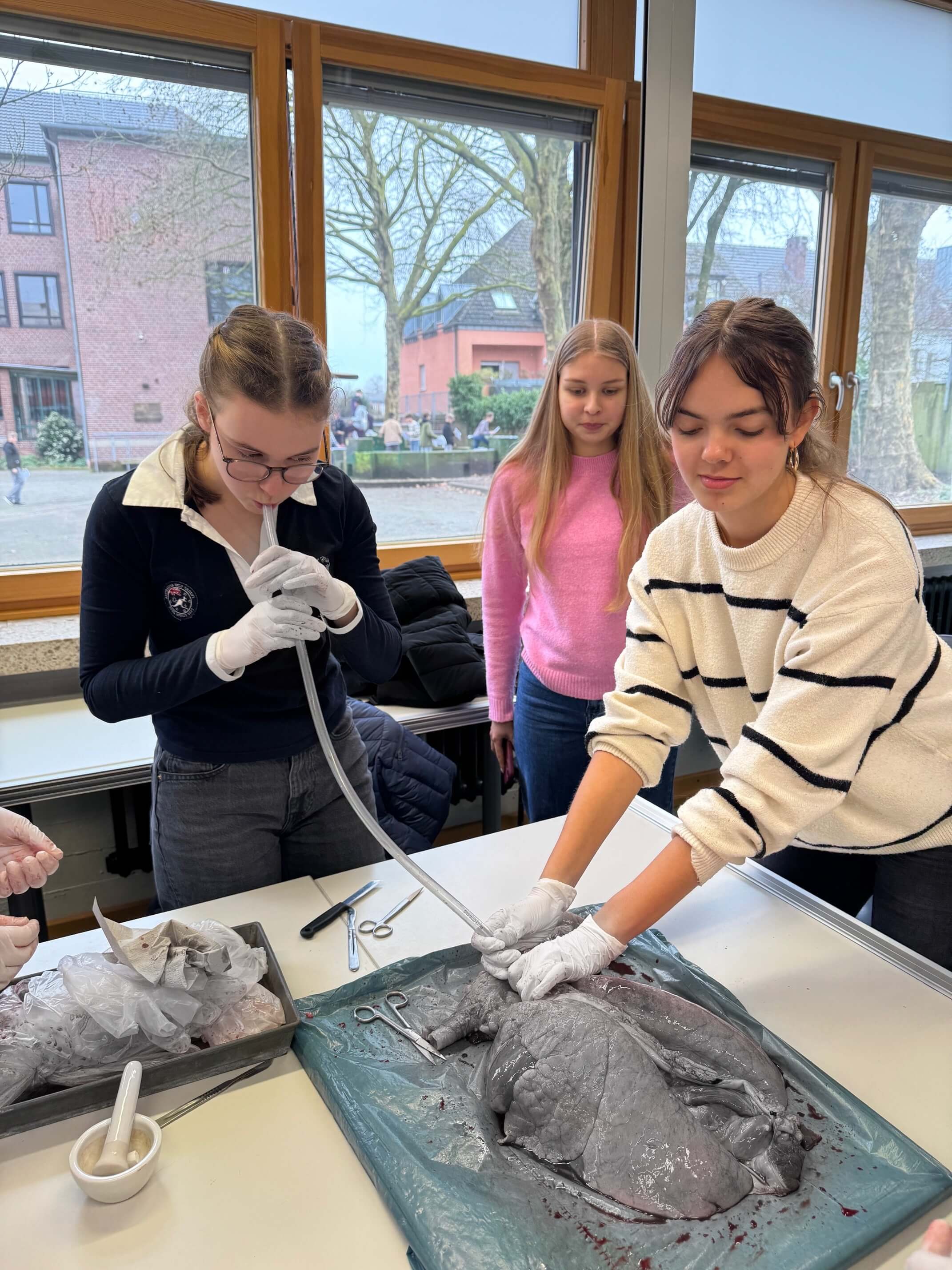 Atemberaubender Unterricht: Schüler sezieren Tierlunge