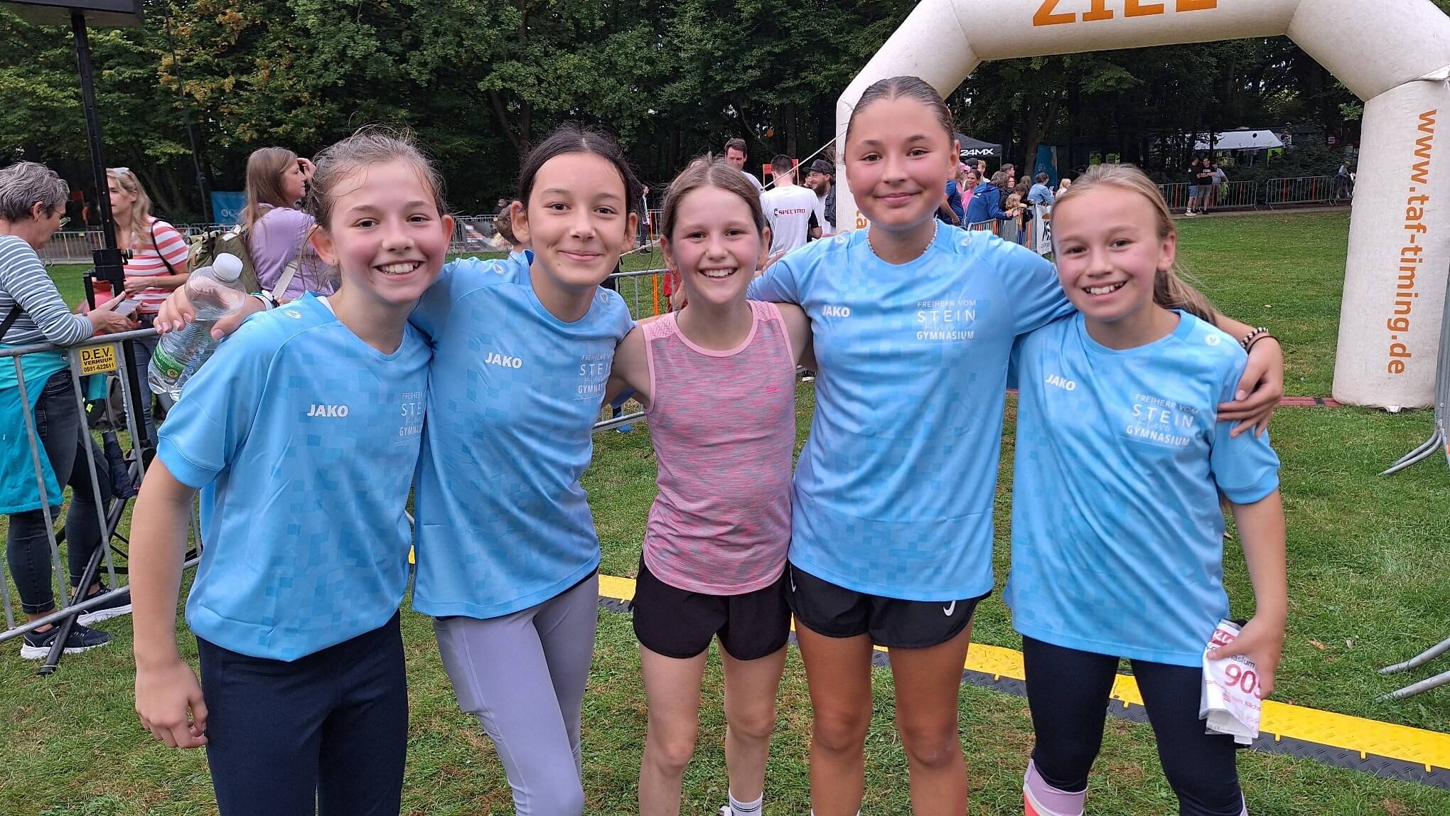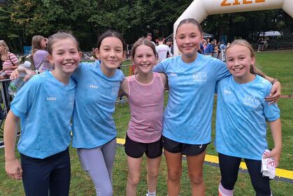 Platz 1 bei den Schulstaffeln der Mädchen gewannen Nejla Loshaj, Milla Jenisch, Lisa Moerkerk, Pia Bongertmann und Paulina Pomazanka in 54:25 Min.