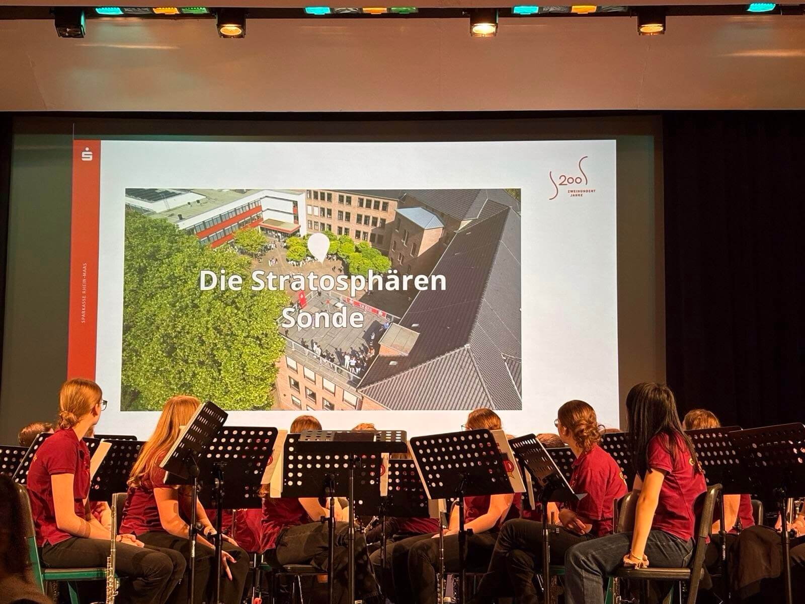 Am 28.11.2025 durften wir stellvertretend für den ehemaligen Technikkurs anlässlich des 200-jährigen Jubiläums der Sparkasse Rhein-Maas an der Gaesdonck unser Wetterballon-Projekt aus dem Jahr 2024 vorstellen. Ziel der Veranstaltung war es, besondere und innovative Schulprojekte zu präsentieren und Einblicke in das vielfältige Engagement der Schülerinnen und Schüler zu geben.
