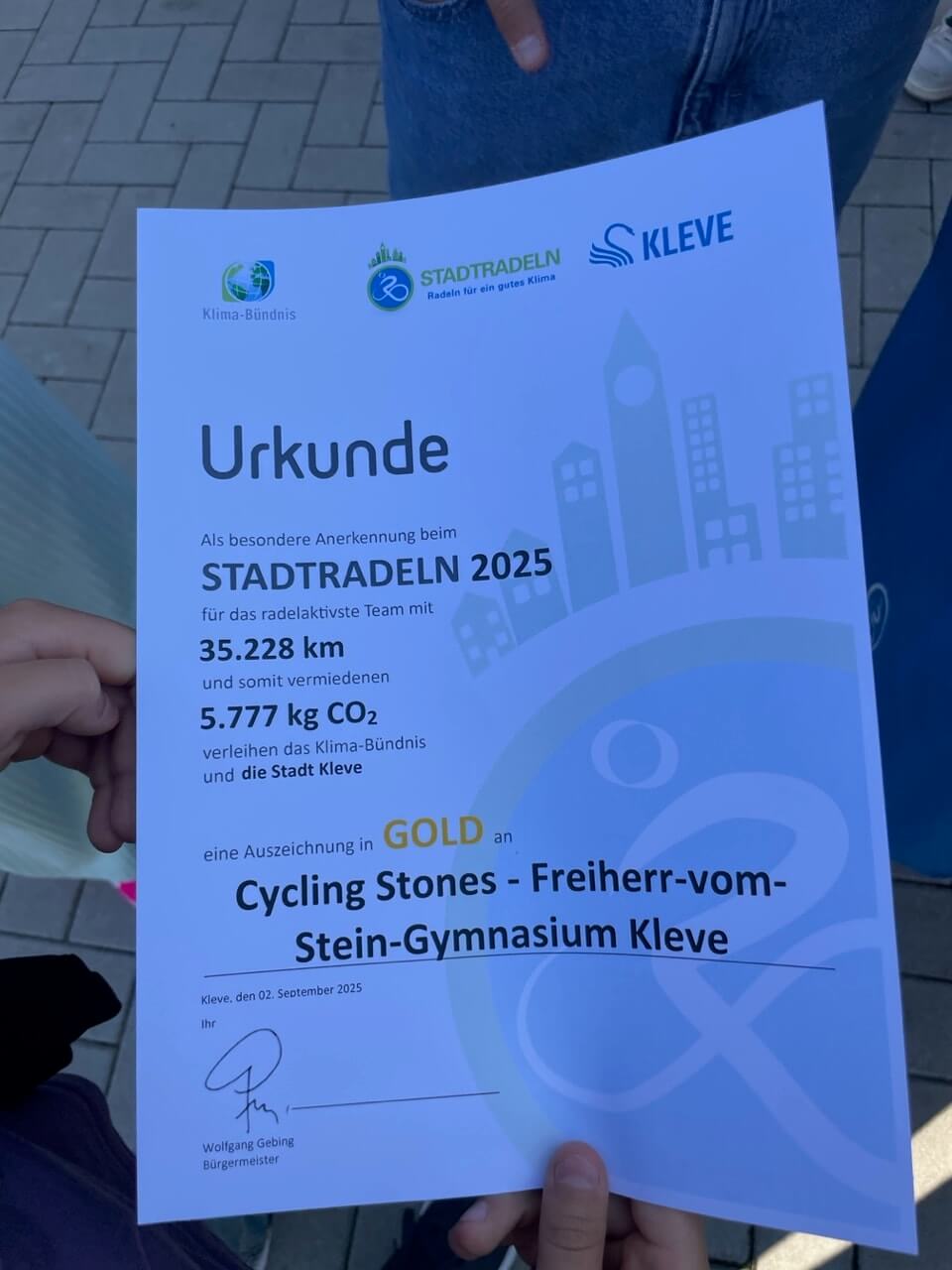 Damit haben wir 2025 zum wiederholten Mal beim Stadtradeln gewonnen. Was für ein schöner Erfolg für unsere Schule!