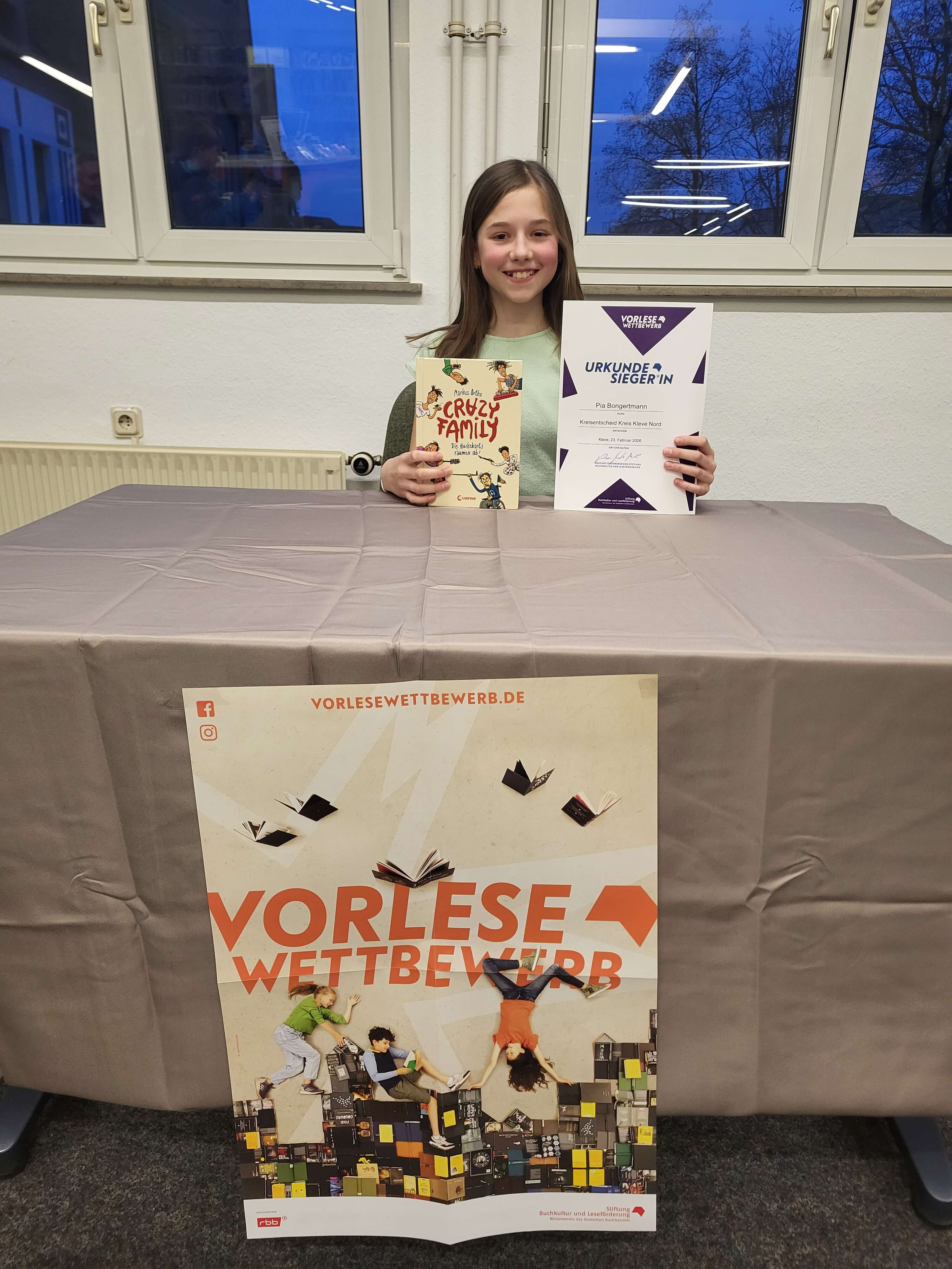 Ein spannender Vorlesewettbewerb in der Klever Bücherei liegt hinter Pia Bongertmann aus der 6b.