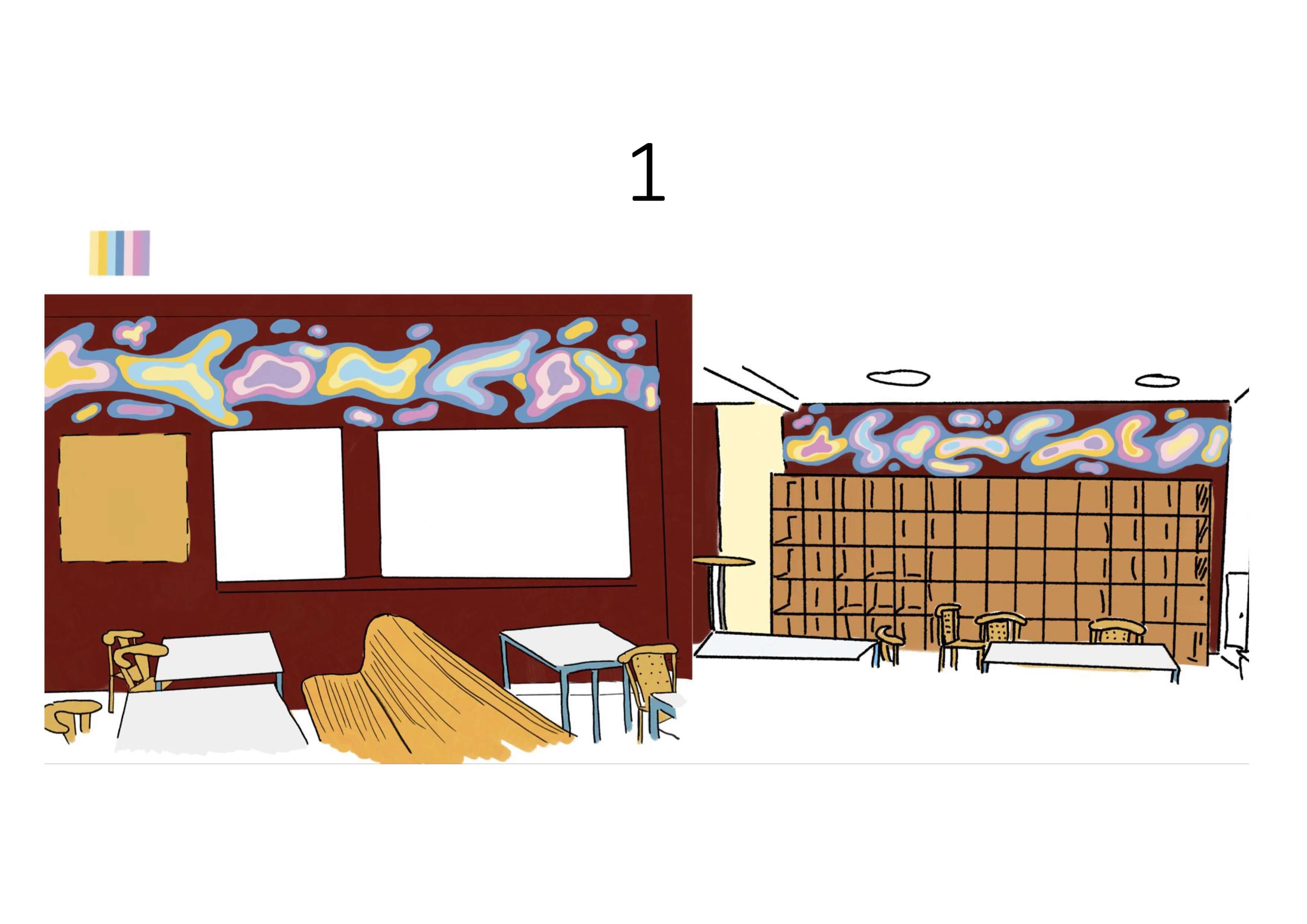„Farbe, Form und Fokus: Cafeteriaentwürfe zwischen theoretischer Harmonielehre und praktischen Gestaltungsprinzipien.“